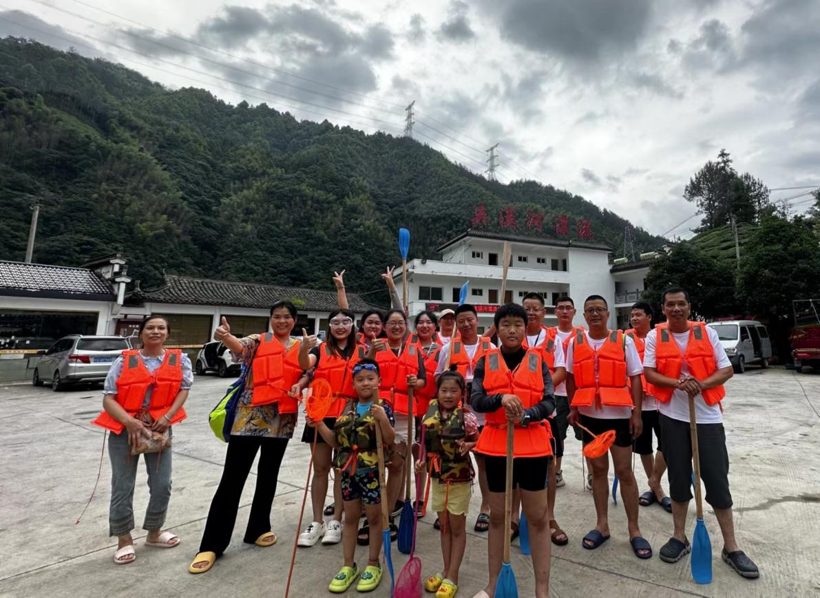 一只小小的橡皮艇,順?biāo)拢瑫r而驚險刺激,時而碧波潺潺,兩岸是青山綠水,鳥語花香,身上是清涼透徹的溪水,將工作的疲憊與生活的煩悶一消而散,暢快淋漓。漂流的同時大家還準(zhǔn)備了水槍、水瓢等打水仗的工具,大家在水上盡情的釋放壓力,感受最純粹的快樂。